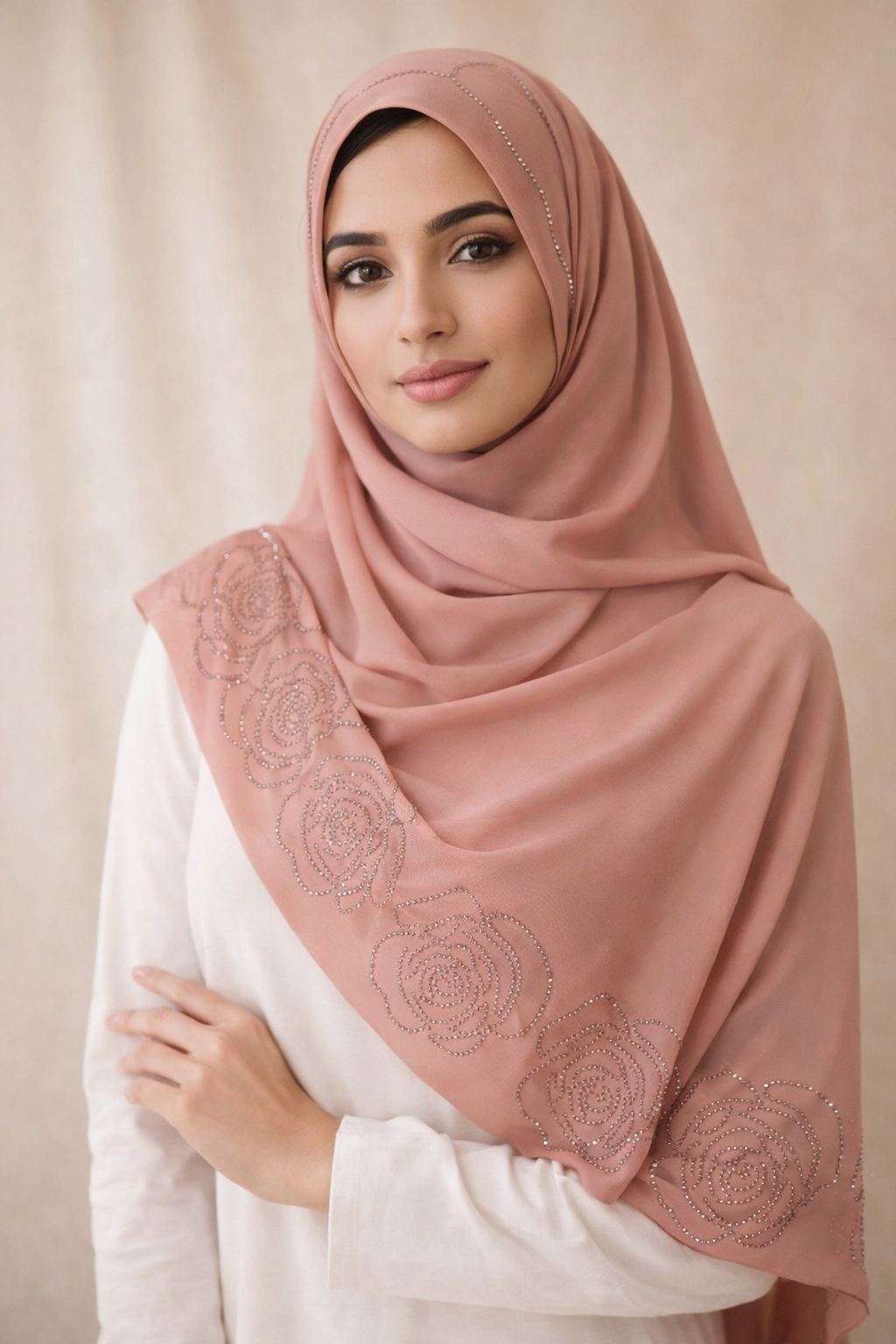 Elevate your style with the timeless beauty of our Ghulab Stone Work Korean Chiffon Shawl, designed for women who appreciate elegance and comfort. Crafted from premium Korean chiffon fabric, this shawl offers a soft, lightweight feel with a graceful drape.